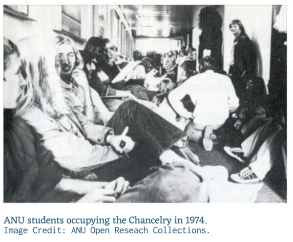 Anna Himmelreich, in her piece in this edition, cautions against romanticising or mythologising student activism from the ‘70s, arguing that student activism has never occupied a central place for the majority of students at the ANU. Despite this, I leave my interview with Judy wondering what it would take to return the spirit of the ANU Labour Club to the ANU today. Looking at most university campuses across Australia today, it is difficult to imagine hundreds of students occupying the Chancelry in a fight to democratise the University, or to imagine droves getting arrested opposing neo-imperialist wars. Whereas many students once fought against occupation in East Timor, few at the ANU today seem aware of the role our own Chancellor, Gareth Evans, played in supporting Indonesia as Australia’s Foreign Minister. Perhaps in learning the activist history of our campus through people such as Judy, at the precise moment when the ANU erases by demolition the key sites of that history, we can begin to imagine a future of the ANU as a site of engaged, creative and critical activism at the scale of excitement of the ‘70s.