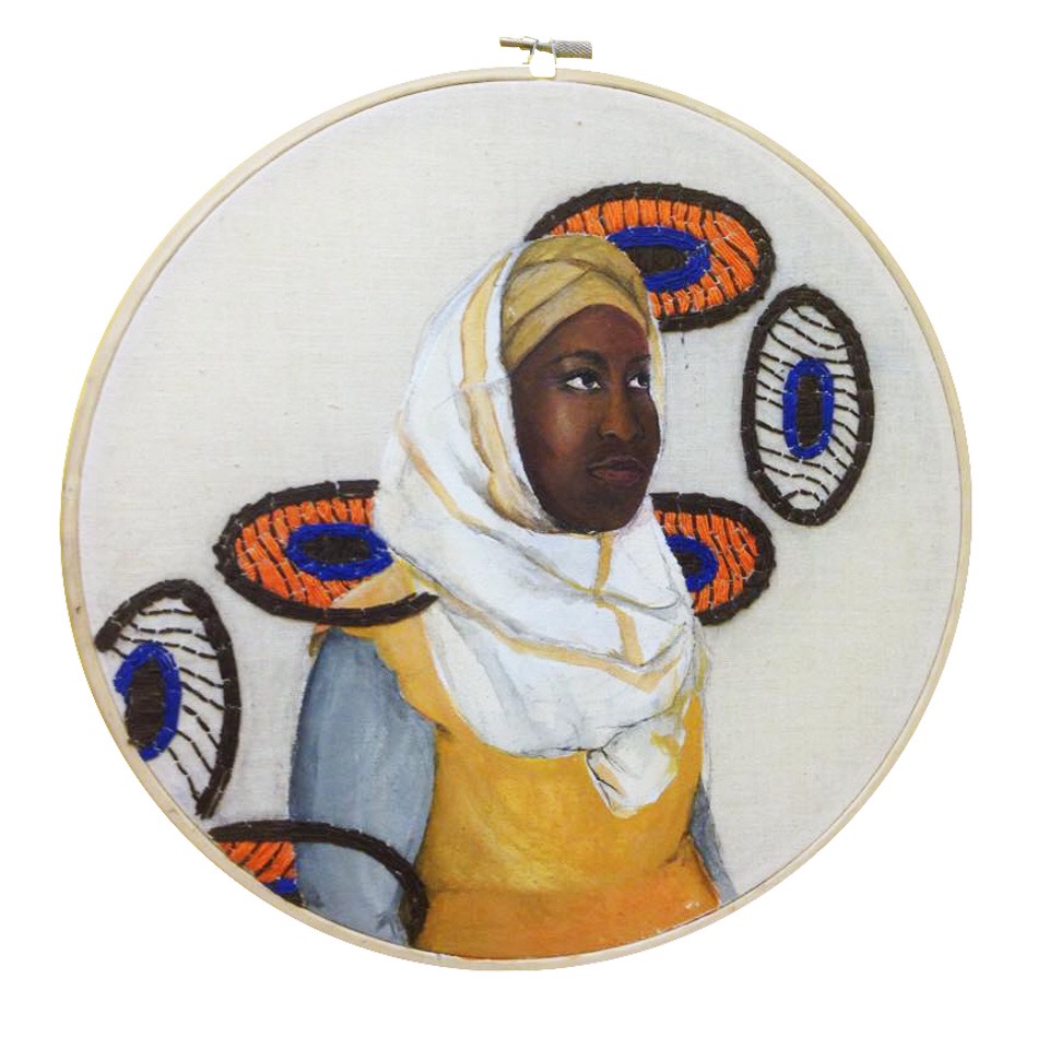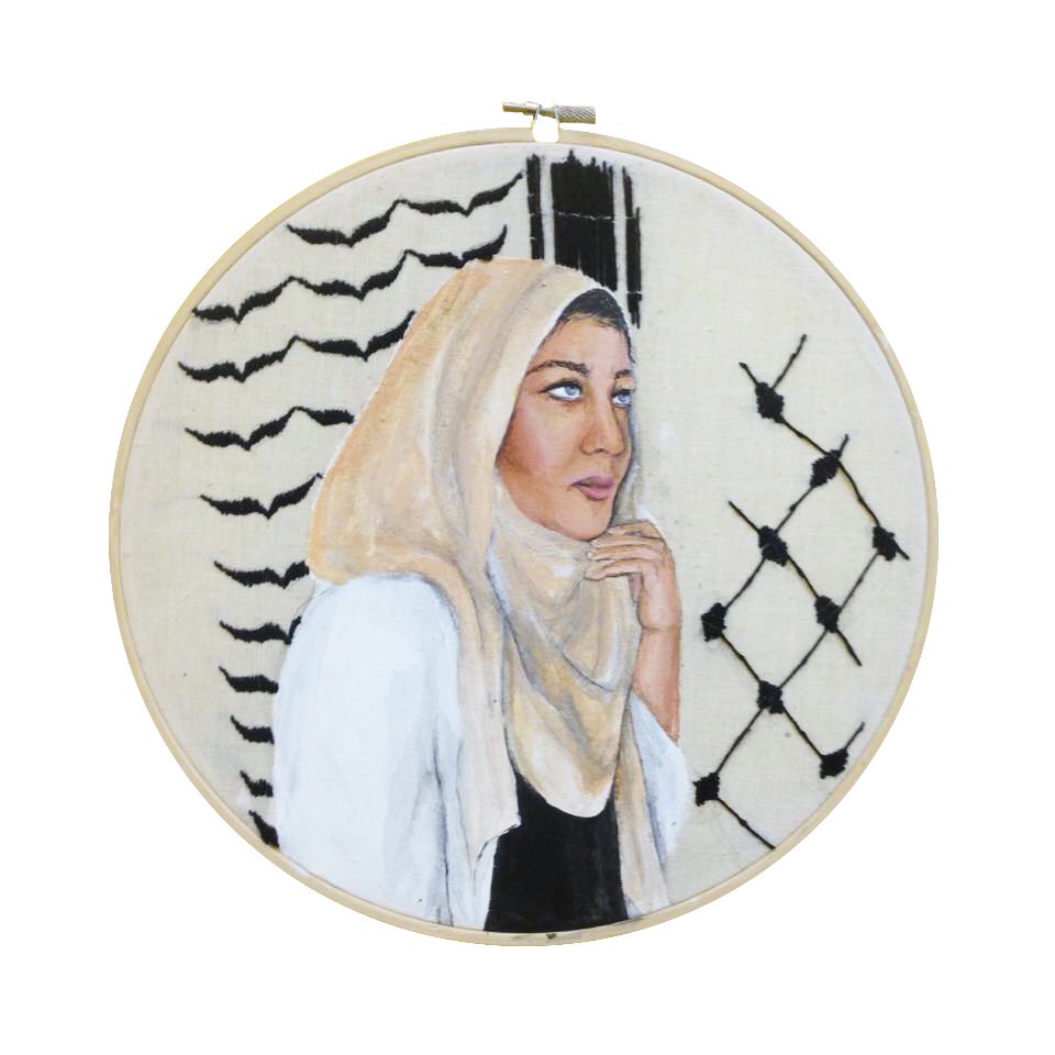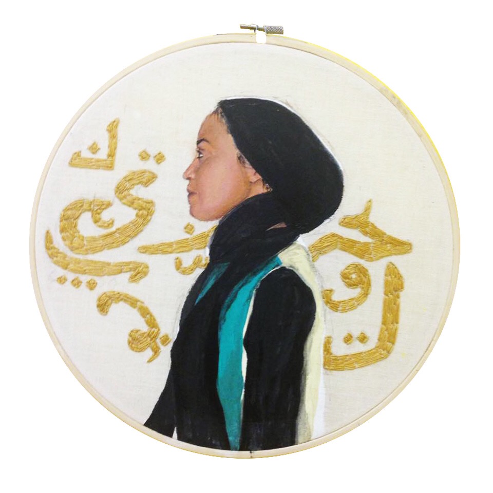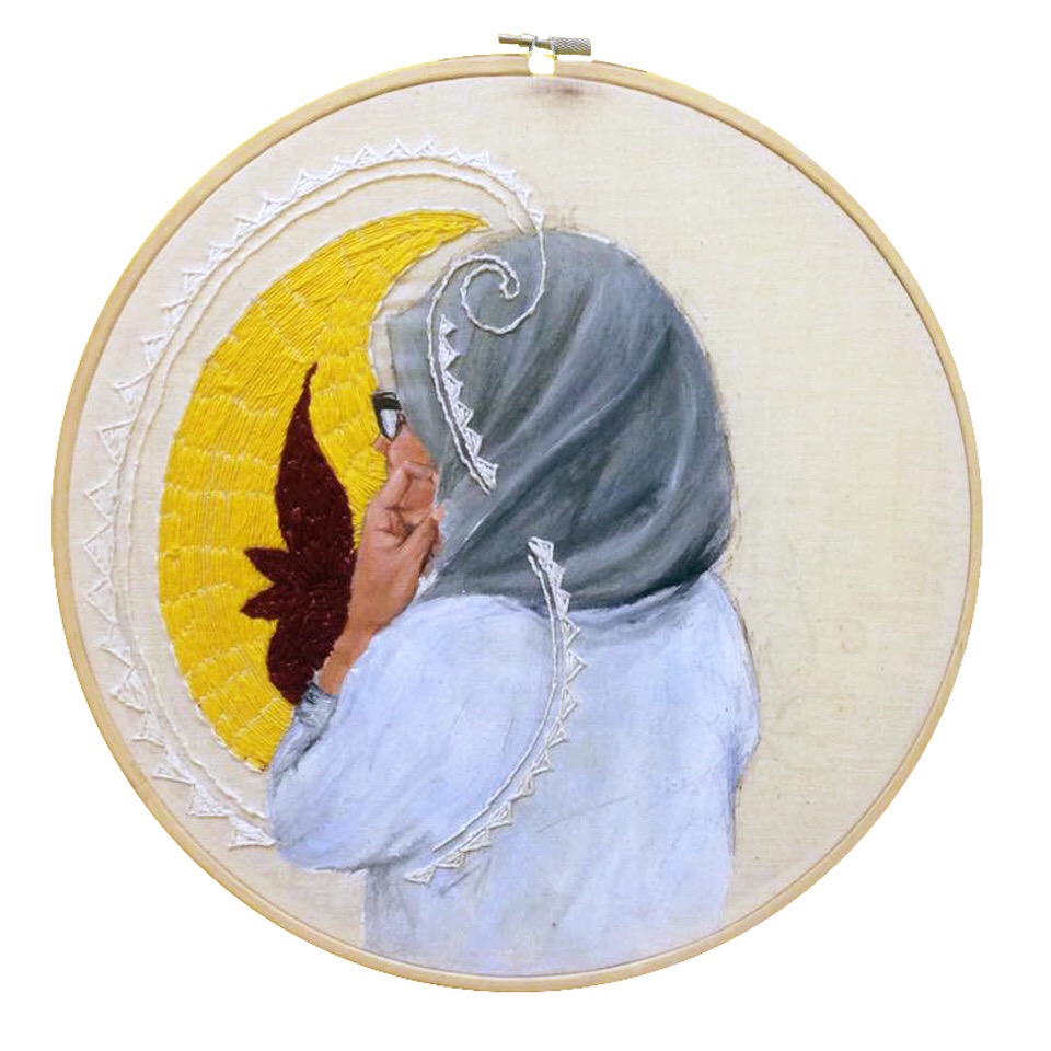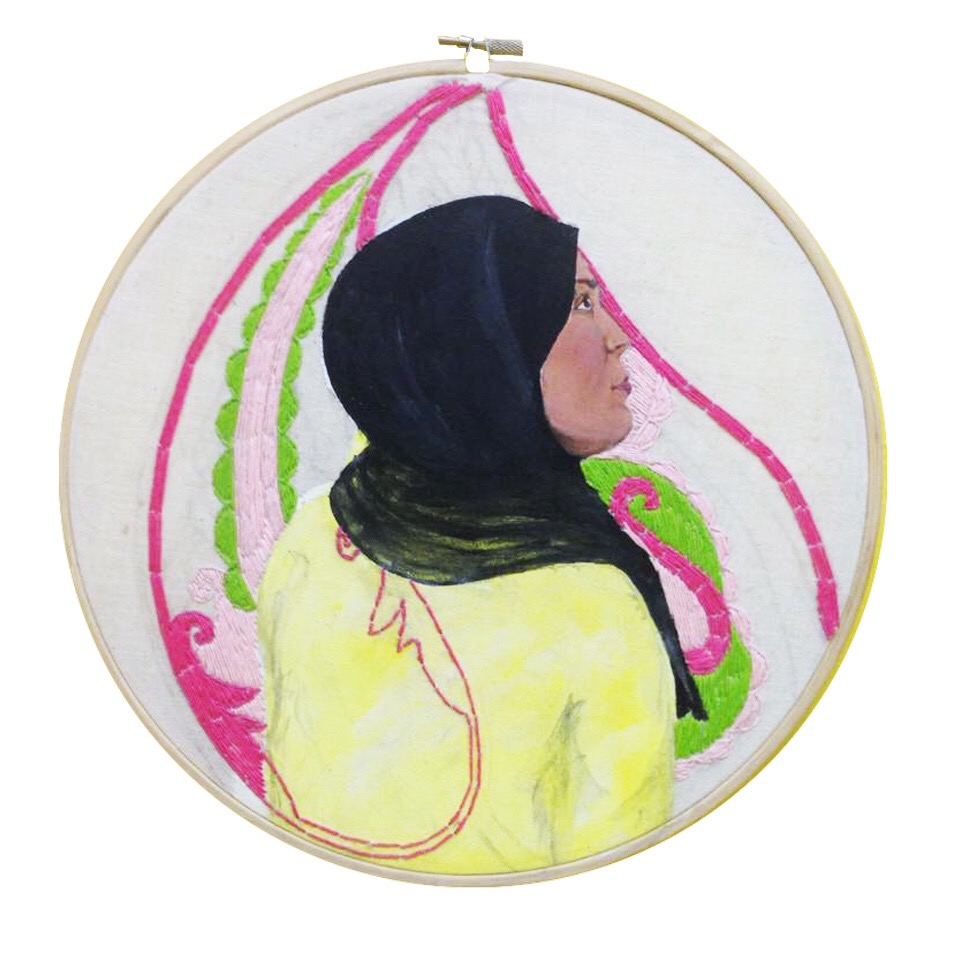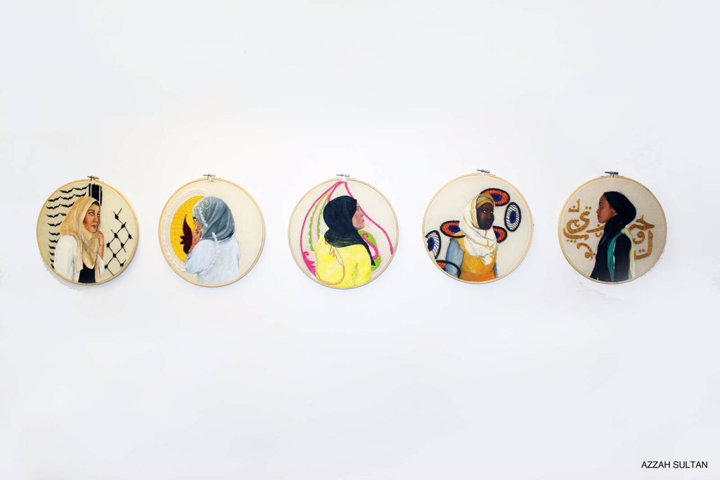 A lot of the misconceptions directed at Muslim women pertain to false ideas about how Islam treats women. In my art piece Strings, I created portraits of five different Muslim women from different ethnic backgrounds and embroidered a pattern that they gave me from their culture.