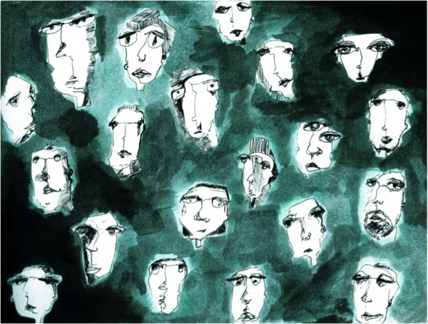 For sure. Something I brought to Art School from high school is the importance of having something to say through your art practise. My teachers always drilled that into me. I don’t like the idea of people speaking just because they can. A little while ago I was working on a zine called Arcadia. I got the idea because one of my friends asked me why I make art. At the time I was very stressed and anxious about a lot of things, and I got really frustrated that I couldn’t think of a good answer. The idea became to compile a bunch of works, which sort of represented what it is like for me to live with anxiety. Arcadia means spaces of calm, and I wanted to play with mixing artworks of calming spaces with ones that came from headspaces that weren’t calm. I had a spare page to fill and I really love playing around with pens. I drew a bunch of these faces and then scanned them into my computer. I love weird oceanic colours, so I tried to bring that into it through the background, which I did in Photoshop. The whole project got kind of messy though. I think I was running with an idea where I wasn’t really sure what I was saying. Mental illness does come into a lot of artwork, but I think sometimes it is glorified in art as a beautiful or desirable thing, which frustrates me. I want to be able to refine this idea and finish it when I do know what I want to say.